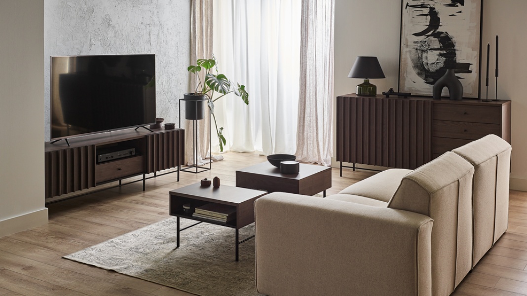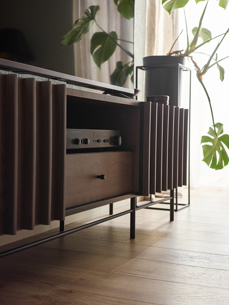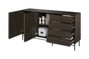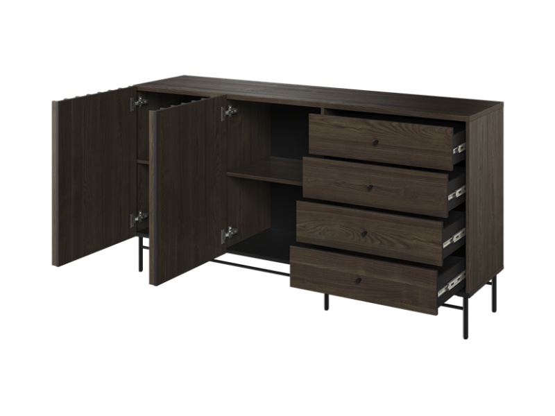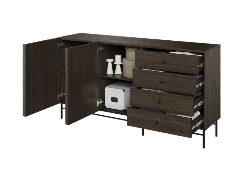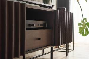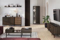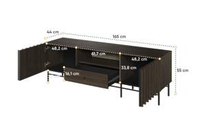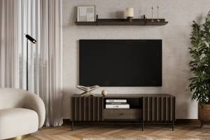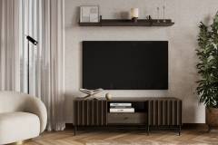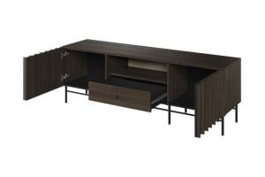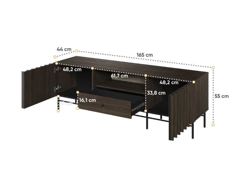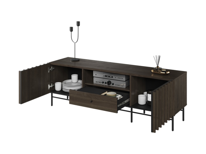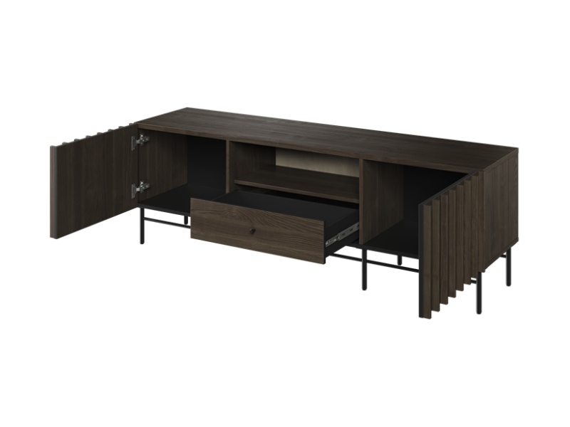 - comoda tv are 3 compartimente din care unul deschis fara usa