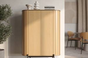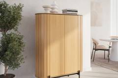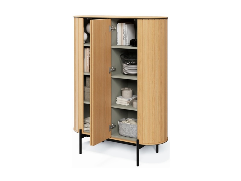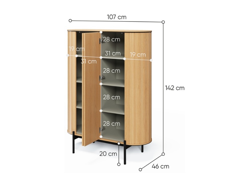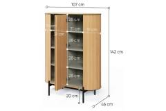 - vitrina inalta are 2 usi cu cate 3 polite per compartiment in interior
