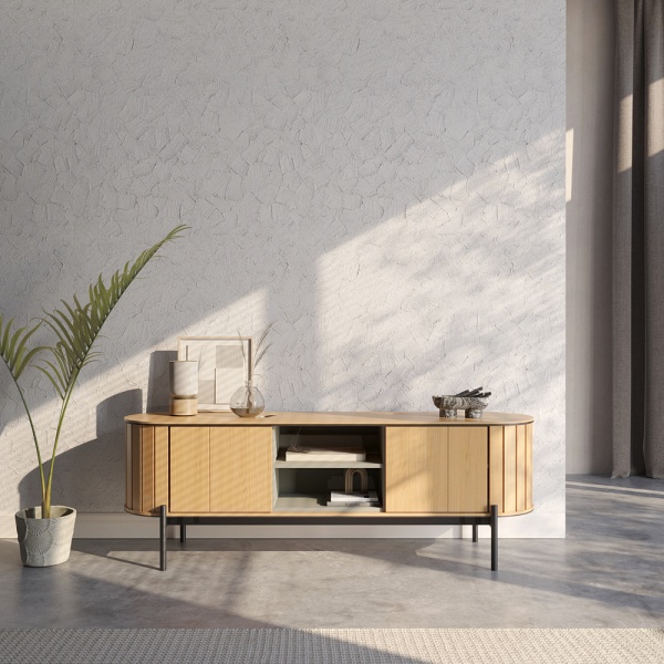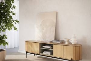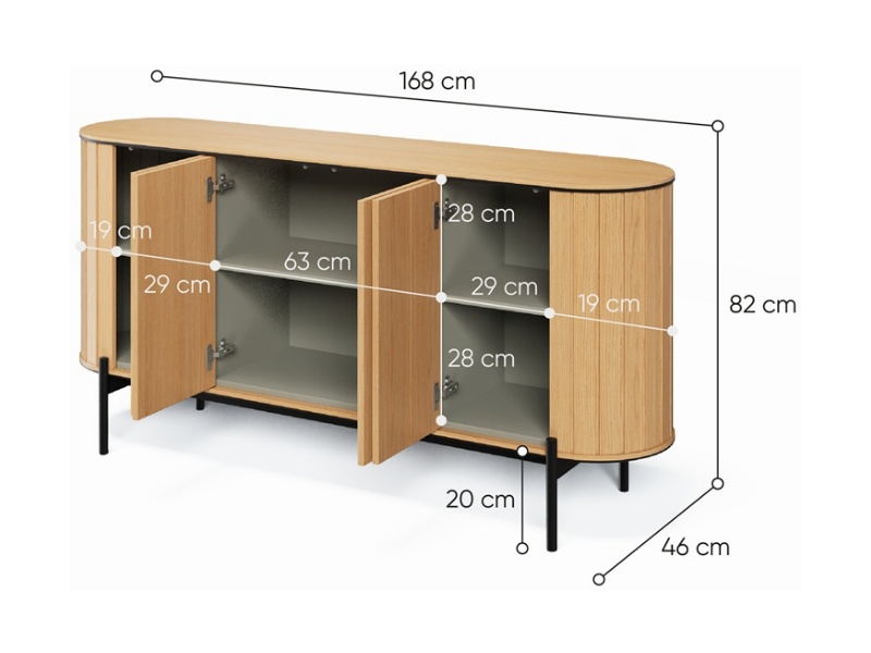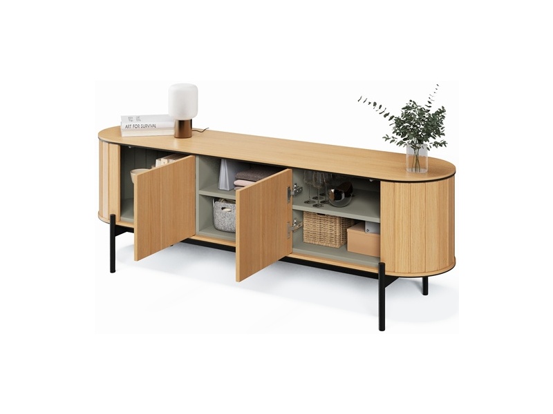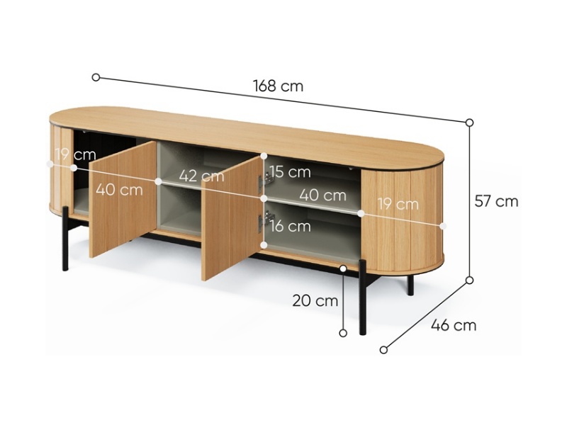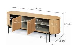 - comoda tv are 2 usi si un spatiu liber, pentru fiecare compartiment este cate 1 polita