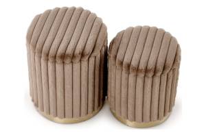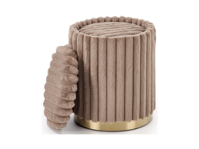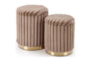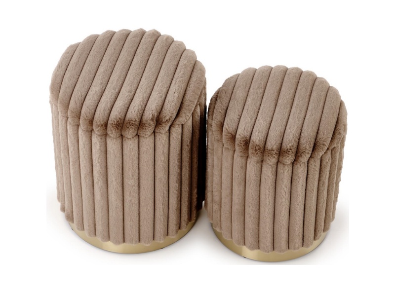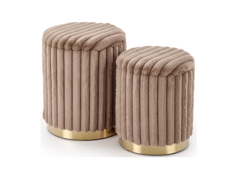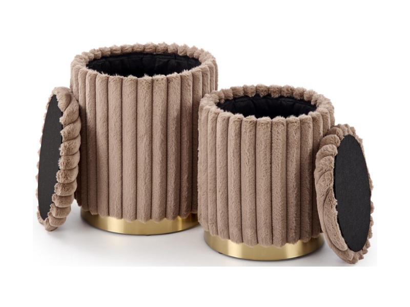 Set 2 tabureti FIDO material plusat-raiat cappuccino, cadru auriu, cu spatiu pentru depozitare 44xH36cm / 38xH31cm