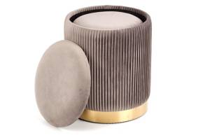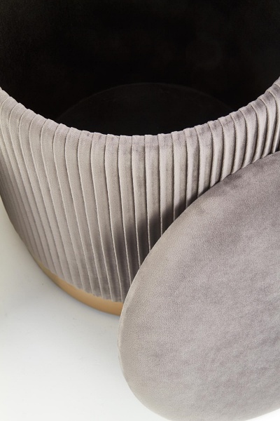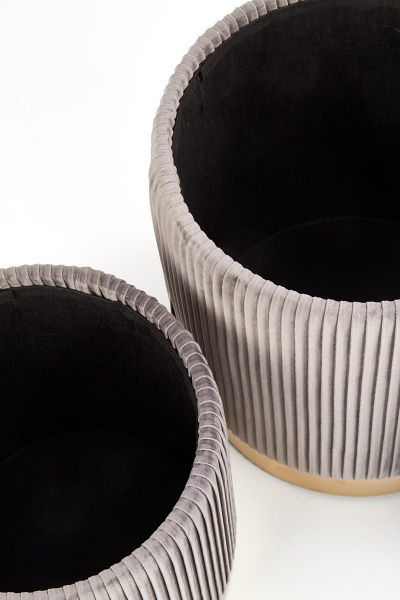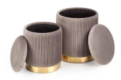 Set 2 tabureti MONTY catifea gri, cadru auriu, cu spatiu pentru depozitare 44xH36cm / 38xH31cm