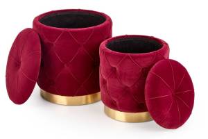 Set 2 tabureti POLLY catifea bordo, cu spatiu pentru depozitare 40xH44cm / 33xH38cm