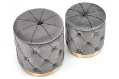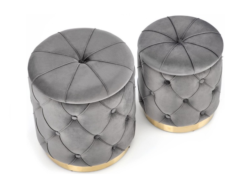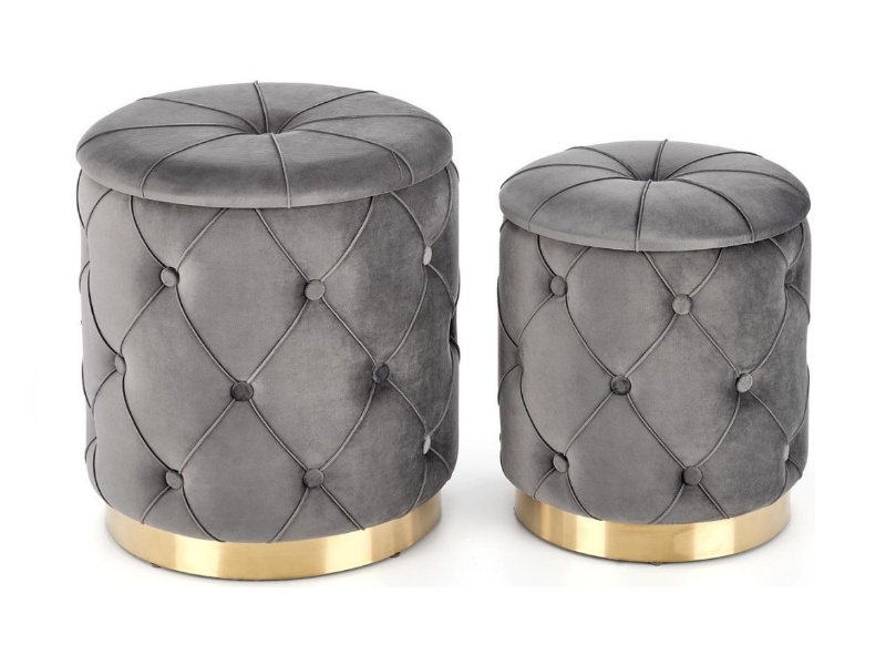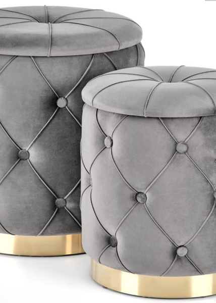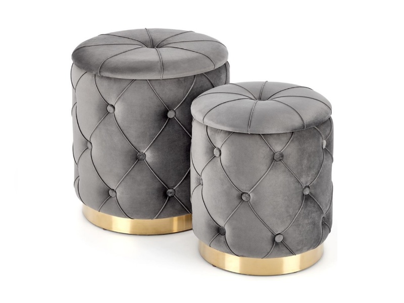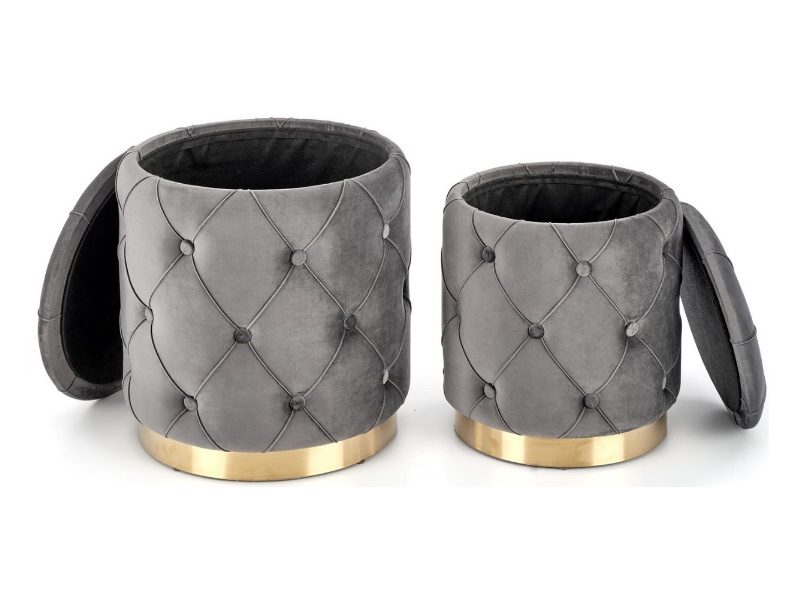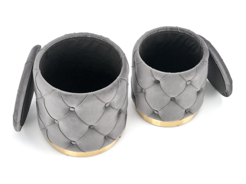 Set 2 tabureti POLLY catifea gri, cu spatiu pentru depozitare 40xH44cm / 33xH38cm