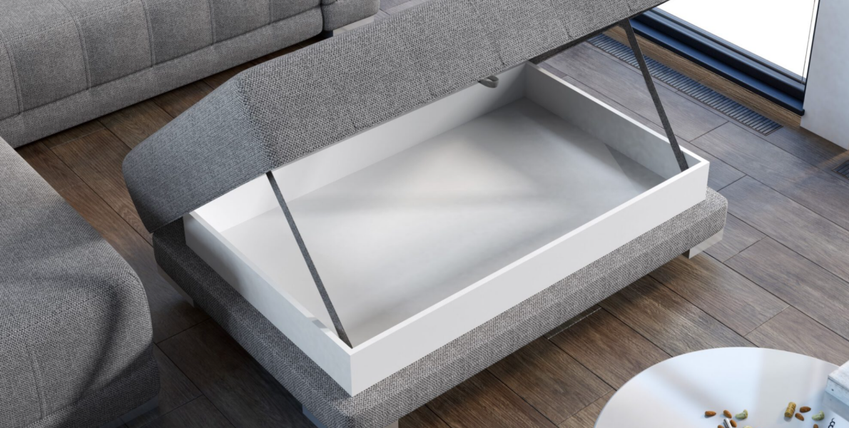 Taburet CAMPO cu spatiu pentru depozitare, picioare crom, personalizabil 135x70xH46cm