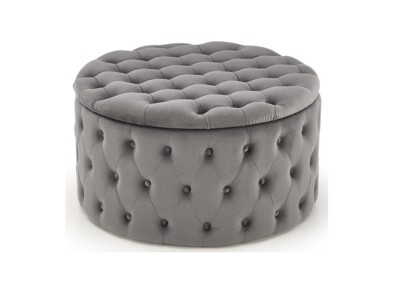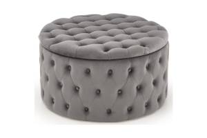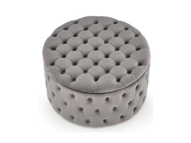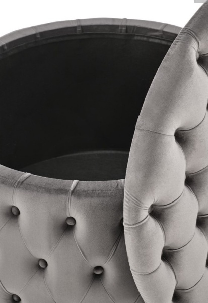 Taburet NUNEZ cu spatiu pentru depozitare, catifea gri, design chesterfiled 70xH40cm