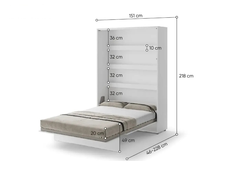 LENART BED CONCEPT BC-01 pat rabatabil pe perete 151x46-228x218cm alb