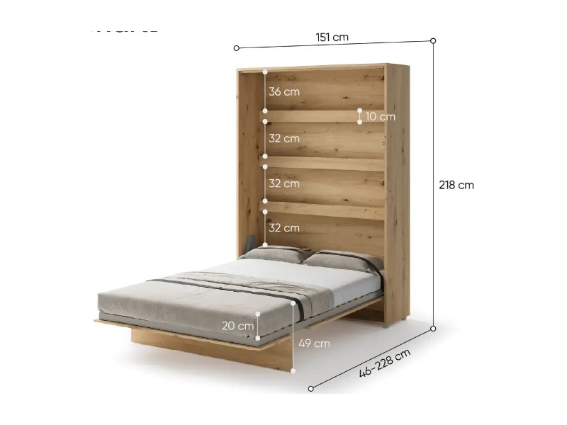 LENART BED CONCEPT BC-01 pat (140x200cm) rabatabil pe perete 151x46-228x218cm stejar Artisan