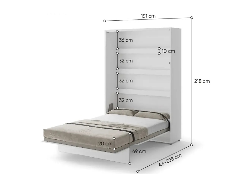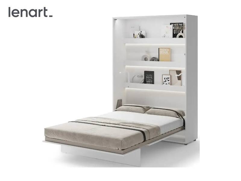 LENART BED CONCEPT BC-01p pat (140x200cm) rabatabil pe perete 151x46-228x218cm alb lucios