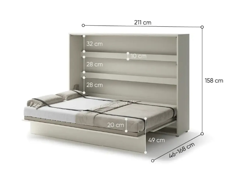 LENART BED CONCEPT BC-04 pat (140x200cm) rabatabil pe perete orizontal 211x46-168x158cm casmir