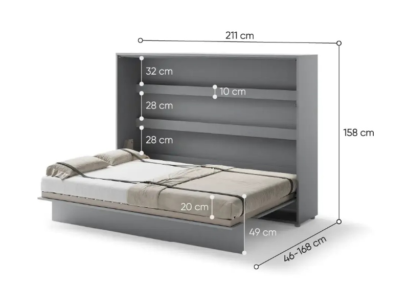 LENART BED CONCEPT BC-04 pat (140x200cm) rabatabil pe perete orizontal 211x46-168x158cm gri