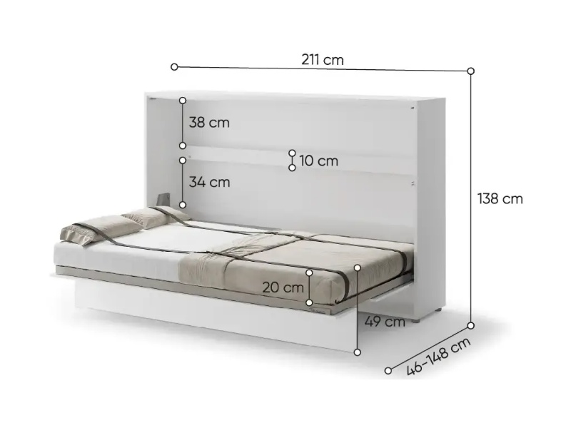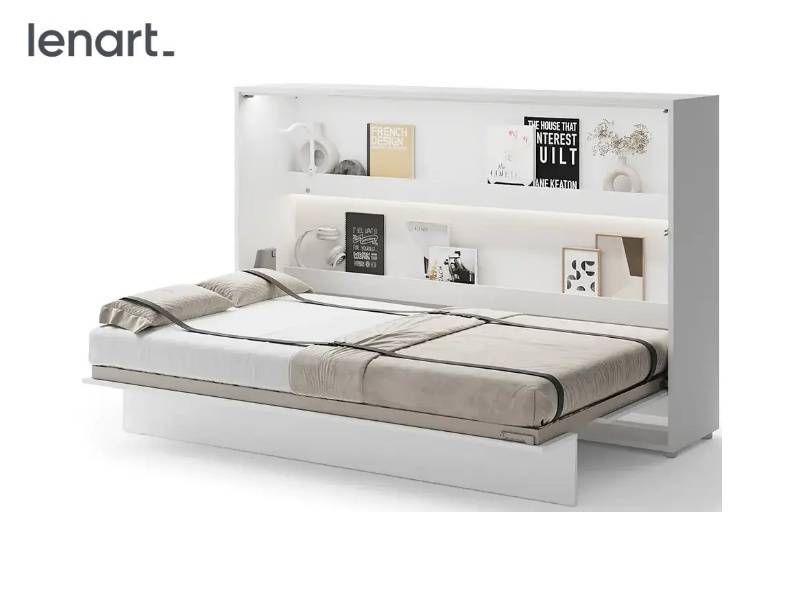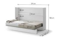 LENART BED CONCEPT BC-05 pat (120x200cm) rabatabil pe perete orizontal 211x46-148x138cm alb lucios