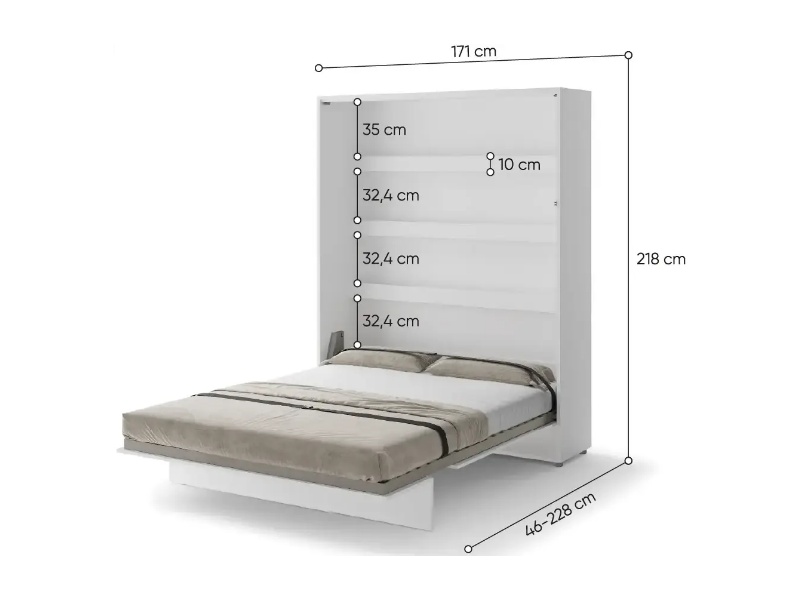 LENART BED CONCEPT BC-12 pat (160x200cm) rabatabil pe perete 171x46-228x218cm alb