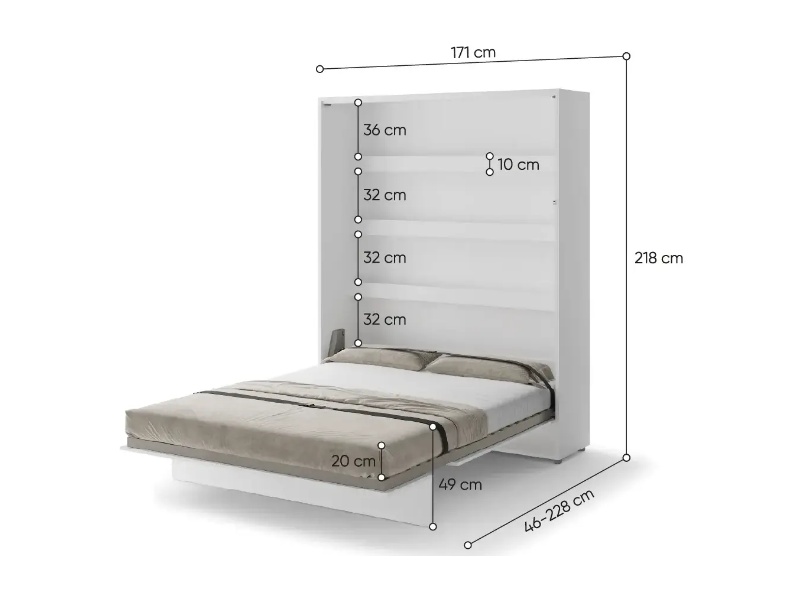 LENART BED CONCEPT BC-12P pat (160x200cm) rabatabil pe perete 171x46-228x218cm alb lucios