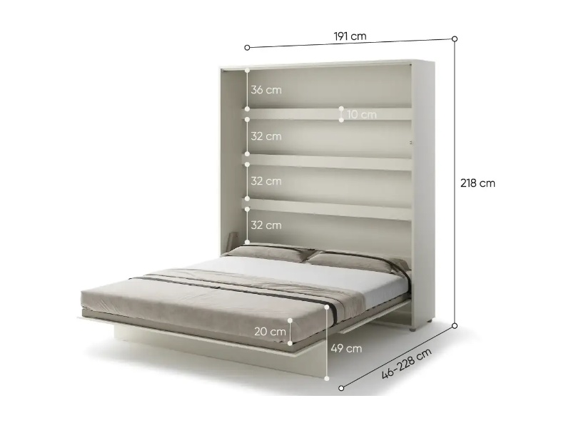LENART BED CONCEPT BC-13 pat (180x200cm) rabatabil pe perete 191x46-228x218cm casmir