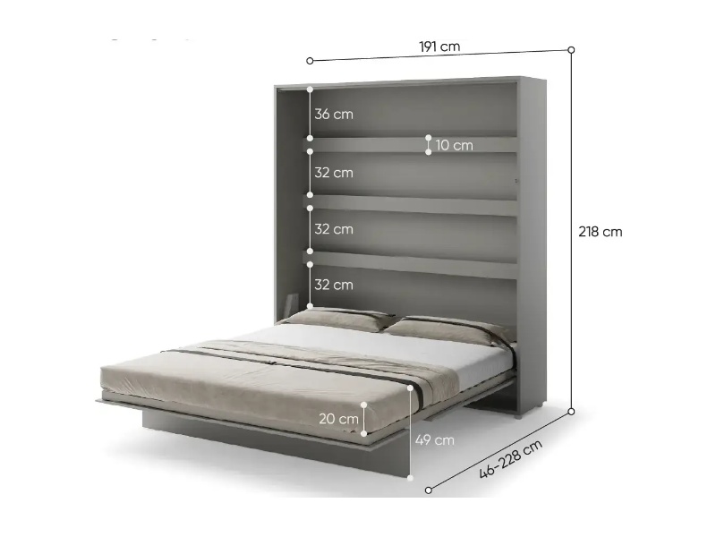 LENART BED CONCEPT BC-13 pat (180x200cm) rabatabil pe perete 191x46-228x218cm grey