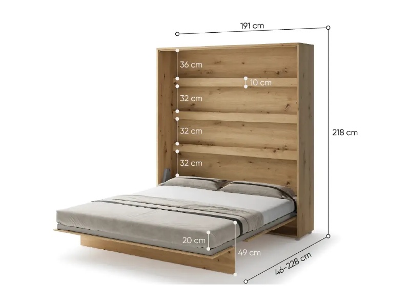LENART BED CONCEPT BC-13 pat (180x200cm) rabatabil pe perete 191x46-228x218cm stejar Artisan