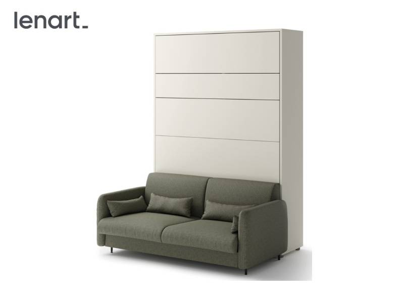 LENART BED CONCEPT set pat (140x200cm) rabatabil pe perete cu canapea olive 164x45-228x218cm