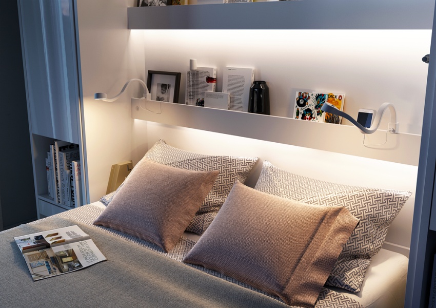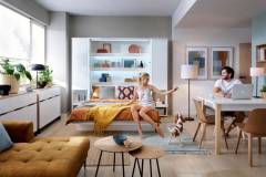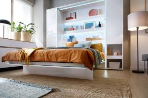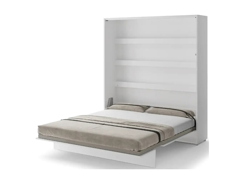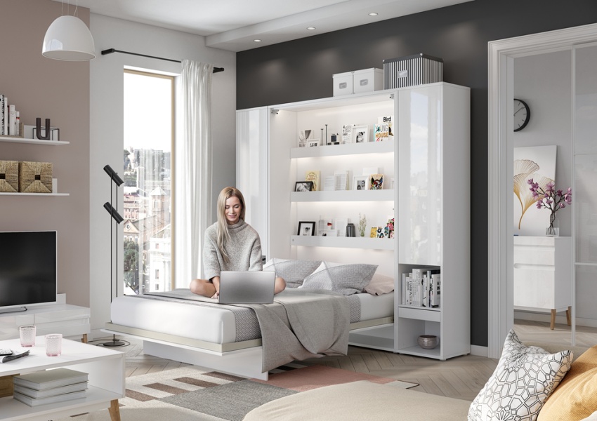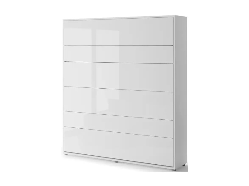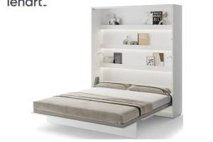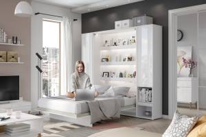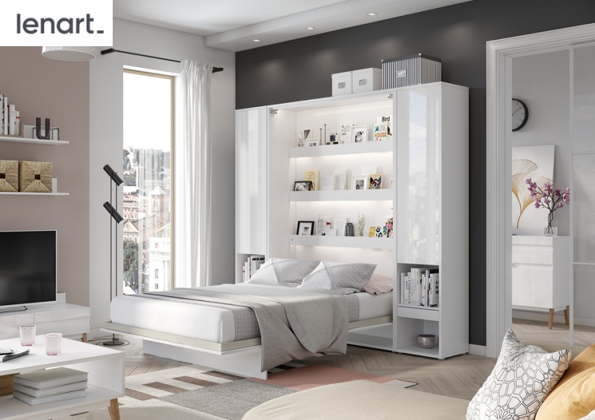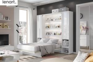 LENART BED CONCEPT set pat (160x200cm) rabatabil pe perete cu 2 dulapuri 261x45-228x218cm alb lucios