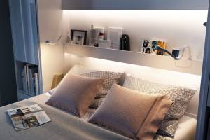 - Spatiu liber de la dulapurile laterale impreuna cu sertarul ofera o combinatie perfecta avand postura de noptiera