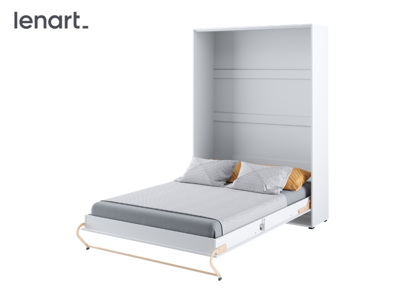 LENART PRO CONCEPT set pat (140x200cm) rabatabil pe perete cu 2 dulapuri 245x46-237x217cm alb alpin/ alb lucios
