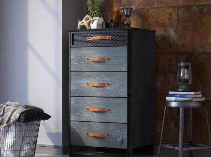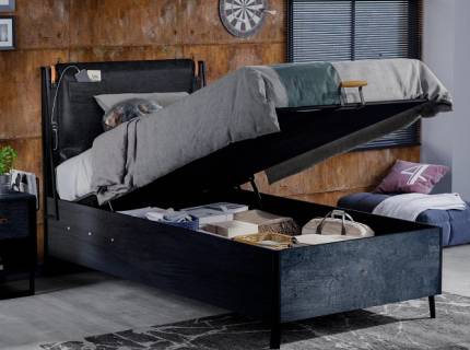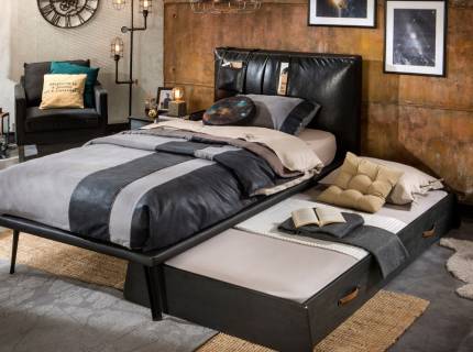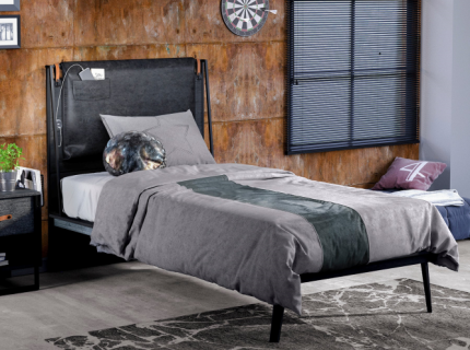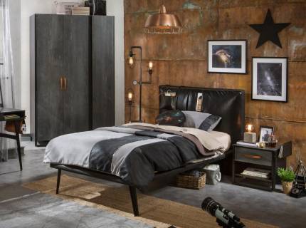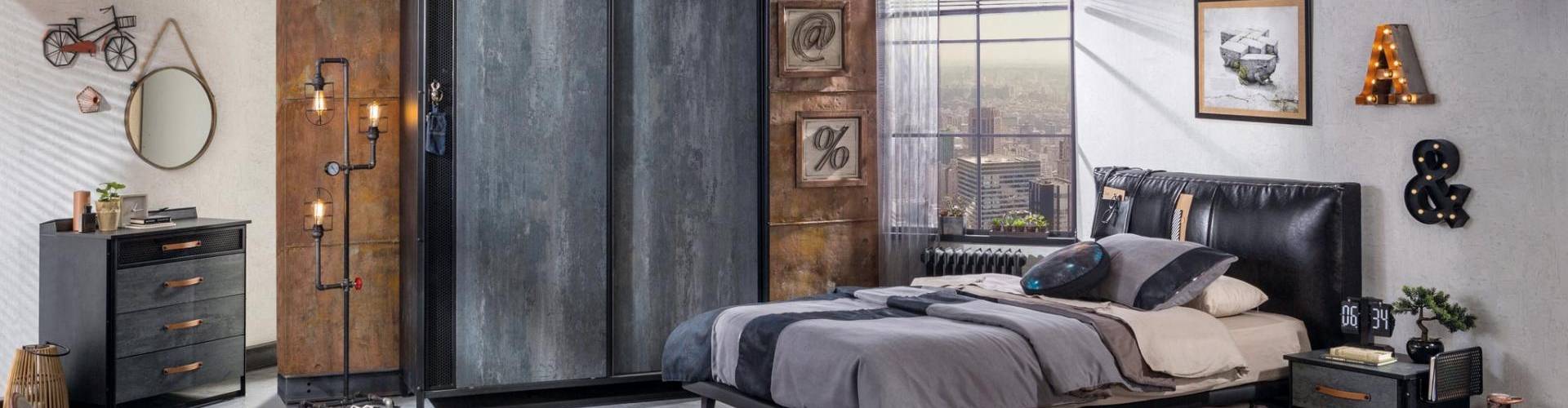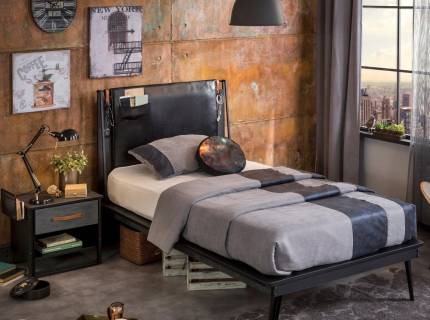 Stil de design industrial și multe elemente metalice negre, care completează aspectul. Alege un dormitor cu adevărat deosebit, din toate punctele de vedere!