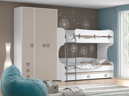 Pat (90x200cm) cu pat suplimentar (80x190cm) KIKI SAND