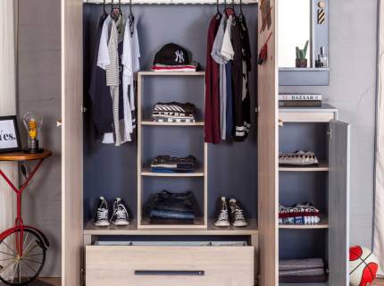 Nuanțe de gri și finisaje de lemn. Un dormitor simplu, dar funcțional care va completa perfect personalitatea adolescentului tău!