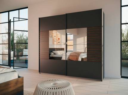 Dulap cu usi glisante BAREA 226x210x62cm gri metalic + stejar Atlantic dark - oglinda, maner gri metalic