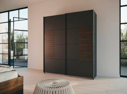 Dulap cu usi glisante BAREA 181x210x62cm gri metalic + stejar Atlantic dark, maner gri metalic