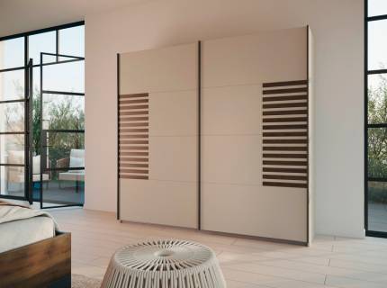 Dulap cu usi glisante BAREA 226x210x62cm champagne + stejar Atlantic dark, maner gri metalic