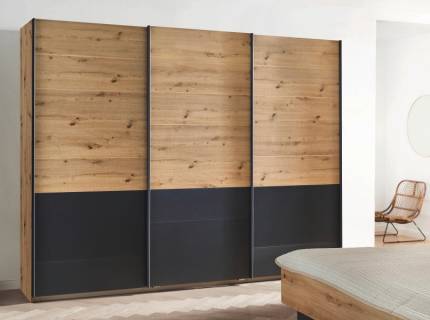 Dulap cu usi glisante BILBAO 226x210x62cm stejar artisan/ gri metalic, maner gri metalic