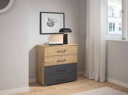 Comoda cu 4 sertare BILBAO 80x81x42cm stejar artisan/ gri metalic, manere gri metalic