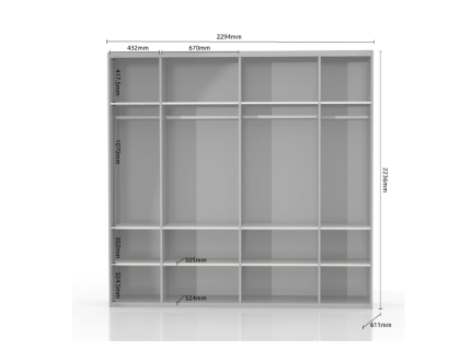 Dulap cu usi glisante GALA 272x224x61cm bej lucios/ Nuc Pacific - oglinda