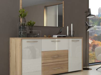 Comoda cu 2 usi si 3 sertare GALA 170x83x46cm bej lucios/ Nuc Pacific
