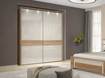 Dulap cu usi glisante GALA 230x224x61cm bej lucios/ Nuc Pacific