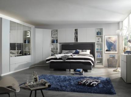 Dulap cu 4 usi cu balamale si 2 sertare MEMPHIS 181x210x54cm alb alpin/ oglinda