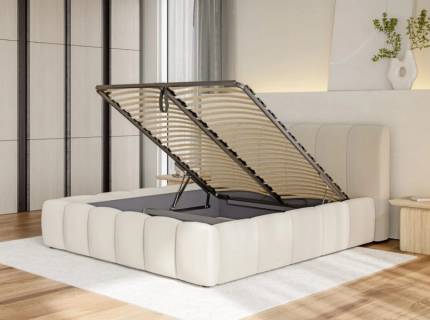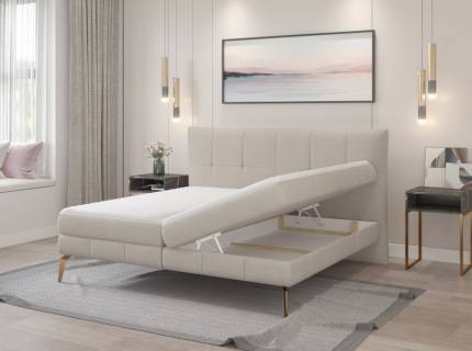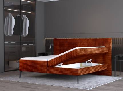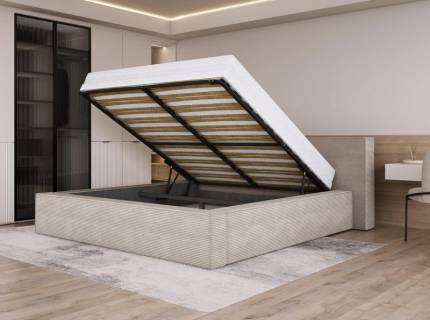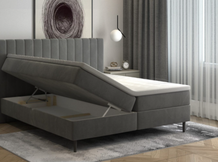 Pat tapitat cu saltea si spatiu pentru depozitare AURORA 160/ 180cm picioare negre