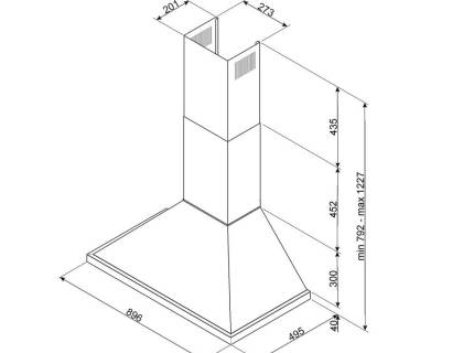 Hota semineu Smeg Portofino KPF9X, 90 cm, inox