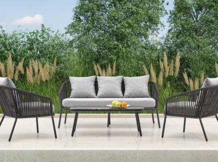 Set banca + 2 fotolii + masuta pentru gradina ROCCA