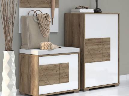 Dulap hol cu 1 usa STELA 63x197x36cm stejar tabac/ alb lucios