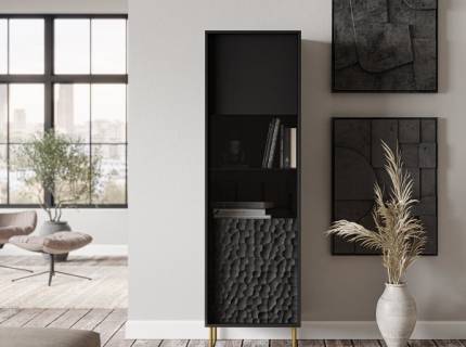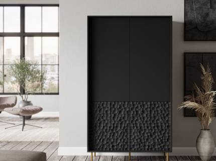 Comoda inalta cu 4 usi BULLET 90x185x53cm negru, picioare aurii