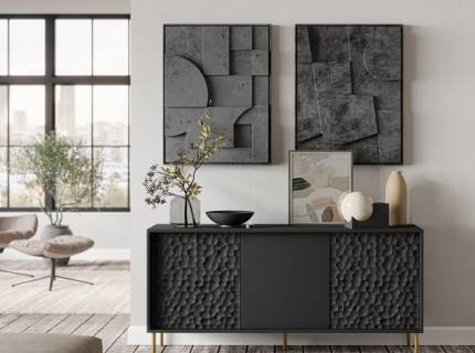 Comoda cu 3 usi BULLET 155x73x41cm negru, picioare aurii