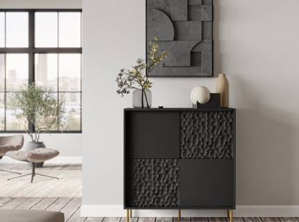 Comoda inalta cu 4 usi BULLET 100x105x41cm negru, picioare aurii