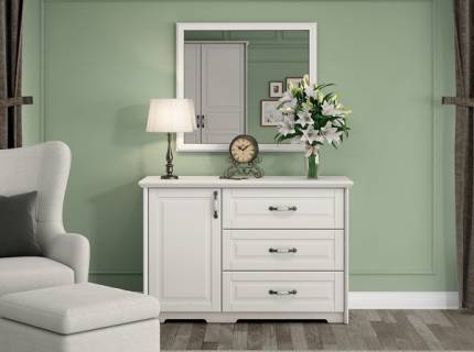 Comoda cu 1 usa si 3 sertare EVERGREEN 131x88x48cm ivory/ pin polar