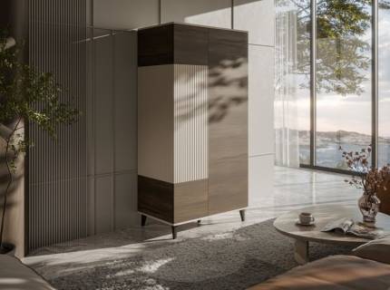 Vitrina inalta cu usa din sticla W-1 RANDOM 2 60x182x40cm casmir/ nuc