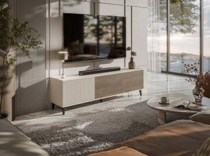 Comoda TV semineu cu 2 usi RANDOM 2 180x52x40cm casmir/ nuc