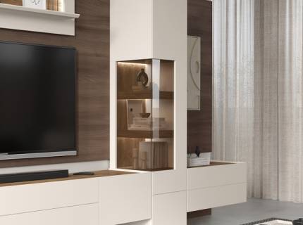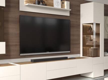 Comoda TV suspendata cu 2 usi si 2 sertare SKY 45 206x37x47cm casmir/ stejar tabac
