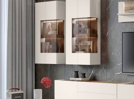 Vitrina suspendata cu led SKY 45 62x125x30cm casmir/ stejar tutun - sticla