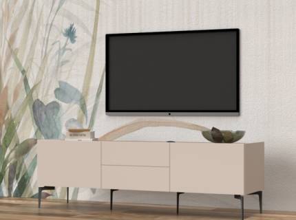 Comoda TV cu picioare negre, 2 usi si 2 sertare SKY 45 206x56x47cm casmir/ stejar tabac
